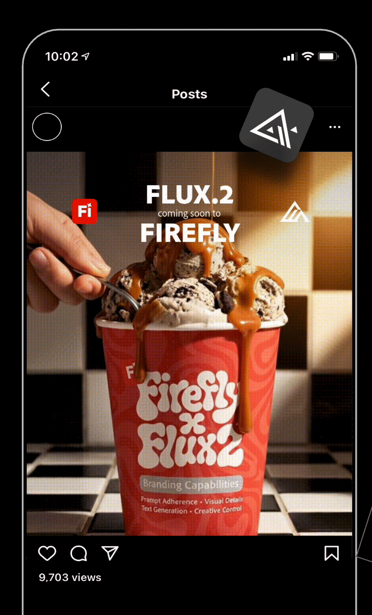 Through Hecho Studios at 72andSunny, I worked as a Creative and executer with Adobe across Firefly and the wider app family. I led concept and execution for launch assets across Adobe’s own models, partner models, and products including Boards, Adobe Express, and Photoshop. I developed concepts to achieve the brand goals for each launch / need, defined the visual direction, and mastered the AI tools directly to reflect their capabilities in various showcases. My role was to translate new features into clear, well-crafted creative that showed the product at its best in tandem with a talented hardworking team.